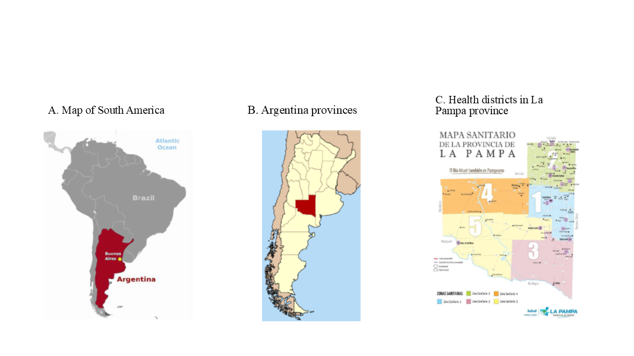 Argentina has a population of around 45 million people living in 23 provinces and the autonomous city of Buenos Aires. The province of La Pampa has 361,859 inhabitants living in an area of 143,440 km² (REF: 2022 Census). The public health system in the province of La Pampa consists of 126 healthcare facilities located across 80 localities, with about 11,000 authorized users, including health professionals and administrative staff. This health care network is administratively organized into five health zones.